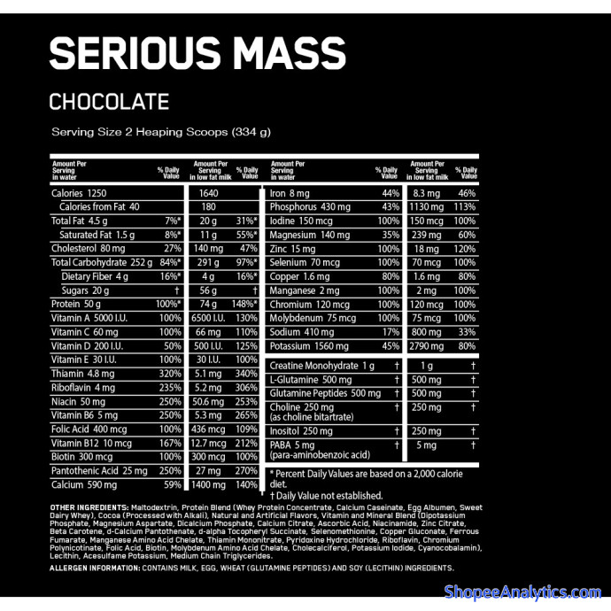 Mỗi serving Serious Mass On có chứa: