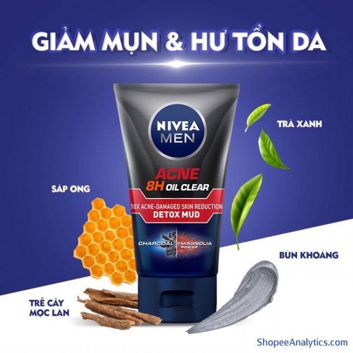 Sản phẩm Sữa rửa mặt Nivea Men Detox Mud giúp giảm mụn & hư tổn da