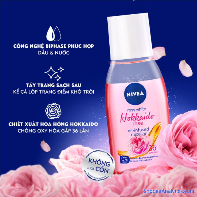 Nước tẩy trang NIVEA Oil-infused Micellar chiết xuất hoa hồng Hokkaido giúp làm sạch hiệu quả lớp trang điểm nhưng vẫn nhẹ dịu cho da nhờ công thức từ thiên nhiên giúp giữ trọn nét thanh xuân tươi trẻ của làn da cho da căng mịn ửng hồng.