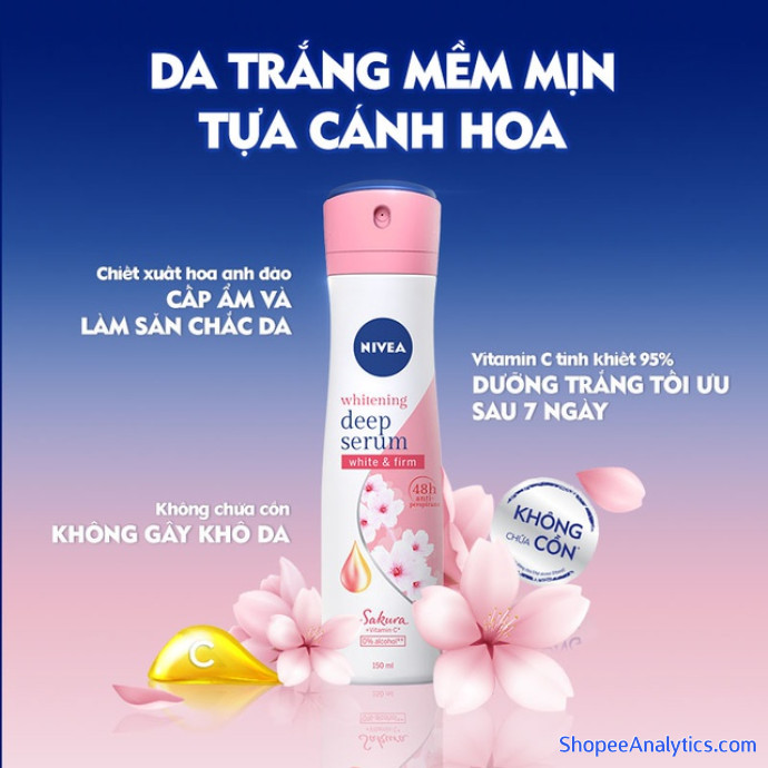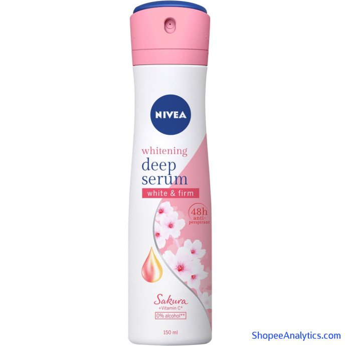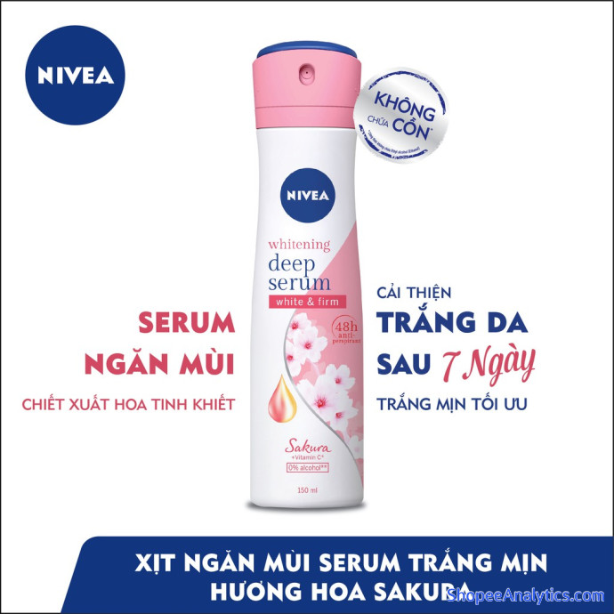 Tổng thể Xịt ngăn mùi Nivea serum trắng mịn hương hoa Sakura (150ml) - 85308 được đánh giá trung bình 4.95/5 điểm dựa vào 1,309 đánh giá qua 3,180 lượt mua hàng (Cập nhập ngày 18/10/2021).