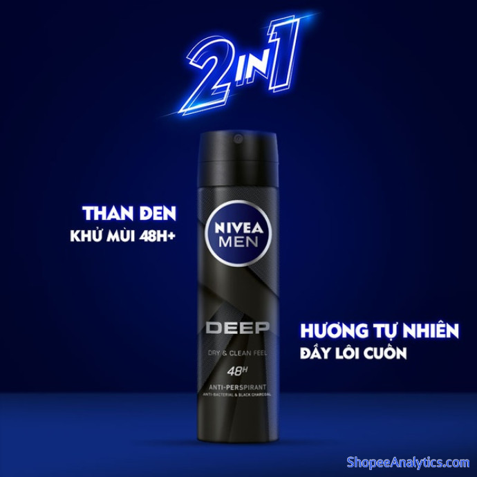 1. Xịt ngăn mùi NIVEA MEN Deep than đen hoạt tính (150ml) - 80027