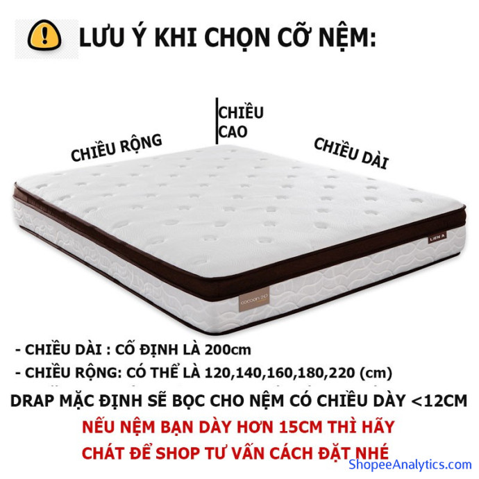 Chú Ý : Nếu nệm của quý khách dày hơn 10cm xin vui lòng chat với shop để được hướng dẫn đặt hàng