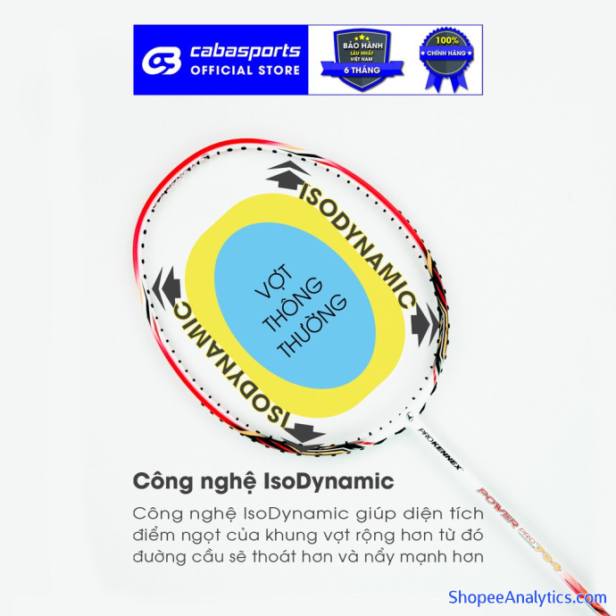 💪 Công nghệ phủ Titan và IsoDynamic giúp vợt mang lại năng lượng truyền tải cao nhất từ tay người chơi đến quả cầu
