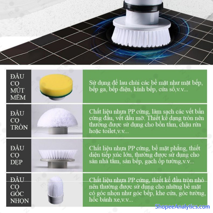 ✅Chất liệu: Vỏ nhựa ABS, bộ đầu cọ nhựa PP (04 cọ kèm máy)