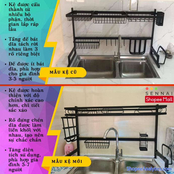 Tổng thể Kệ Chén Nhà Bếp Đa Năng 2 Tầng SENNAI Đặt Trên Bồn Rửa Sơn Tĩnh Điện 5 Lớp được đánh giá trung bình 4.95/5 điểm dựa vào 650 đánh giá qua 1,538 lượt mua hàng (Cập nhập ngày 18/10/2021).
