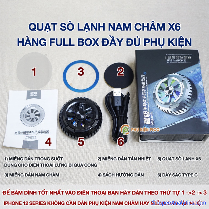 - Bộ sản phẩm gồm có: 01 tản nhiệt X6/X8/X12, 01 vòng nam châm dán, 01 Cáp sạc, 01 Sách HDSD, 01 Hộp Đựng.