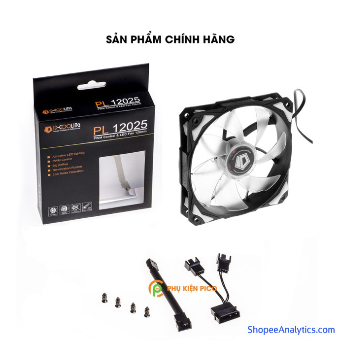 - ID-Cooling PL-12025 là quạt kích cỡ 12cm với led dịu mắt, sức gió thông thoáng.