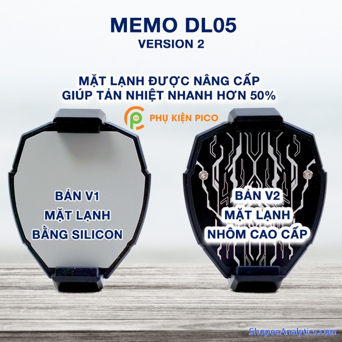 - Memo DL05 Version 2 mới ra mắt 2021 là bản nâng cấp toàn diện của dòng Memo Sò lạnh. Memo DL05 sử dụng sò lạnh công suất cao, có đế tản nhiệt lớn và vật liệu tản nhiệt nhôm cao cấp tốt hơn. Có màn hình LCD hiển thị nhiệt độ.