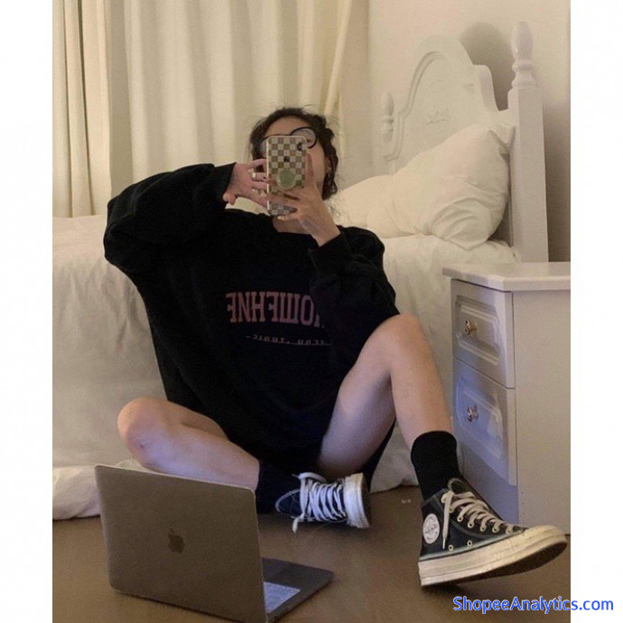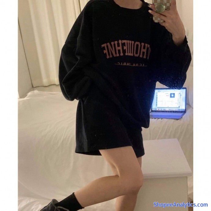 set đồ nữ, bộ quần áo nữ thu đông áo dài tay, quần short 2 màu nâu, đen in chữ phong cách cá tính: