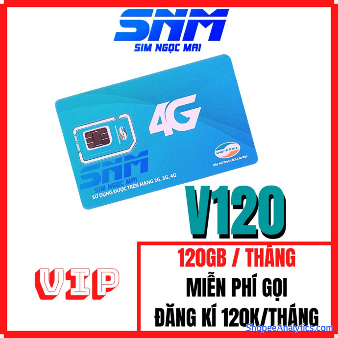 Tổng thể Sim 4G Viettel V120 GÓI VIP - 4GB/NGÀY - 120GB DATA TỐC ĐỘ CAO - MIỄN PHÍ GỌI - SIM NGỌC MAI được đánh giá trung bình 4.80/5 điểm dựa vào 121 đánh giá qua 381 lượt mua hàng (Cập nhập ngày 30/08/2021).
