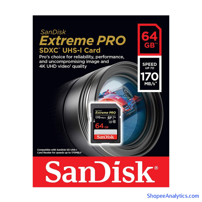 Thẻ nhớ SanDisk Extreme PRO SDXC UHS-I Speed Class 3 là dòng thẻ nhớ phân khúc tốc độ thuộc hàng nhanh nhất của Sandisk, cung cấp tốc độ cực khủng để đáp ứng yêu cầu của chất lượng video 4K UHD trên máy ảnh DSLR, máy ảnh kỹ thuật số hoặc máy quay video HD. Với tốc độ truyền dữ liệu lên đến 170MB/s giúp di chuyển dữ liệu của bạn nhanh chóng, tốc độ ghi lên đến 90MB/s xử lý các chế độ chụp nhanh, chụp liên tiếp và chụp RAW với JPEG cực kỳ dễ dàng.