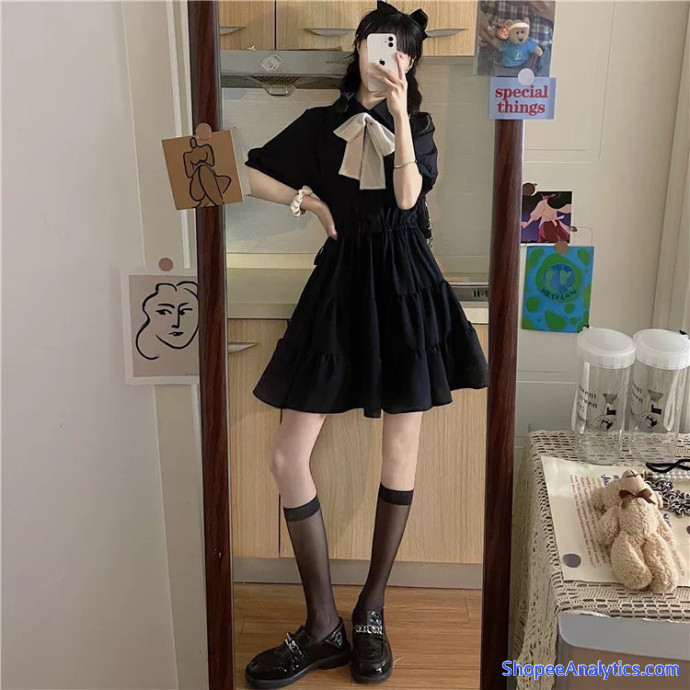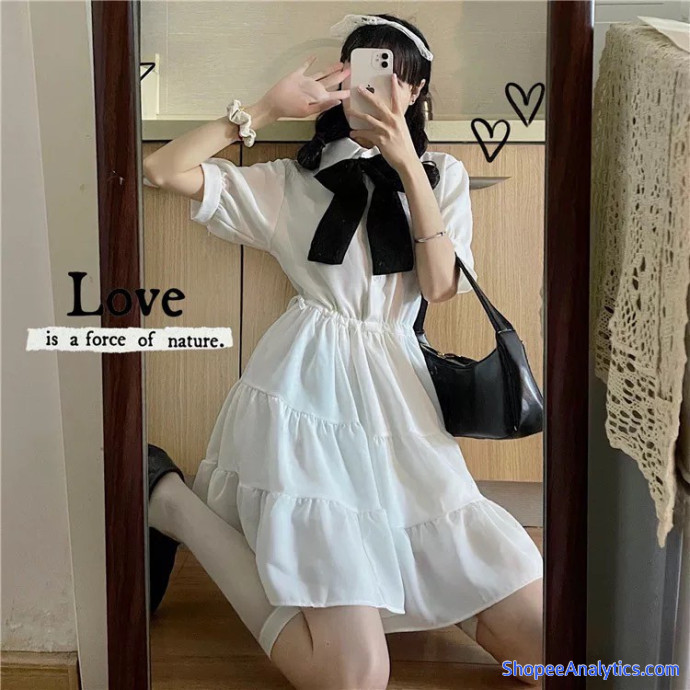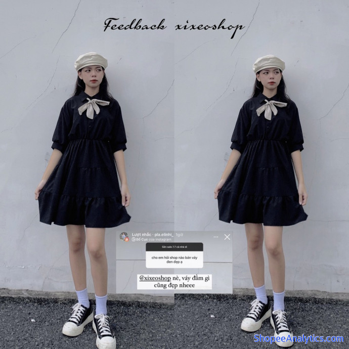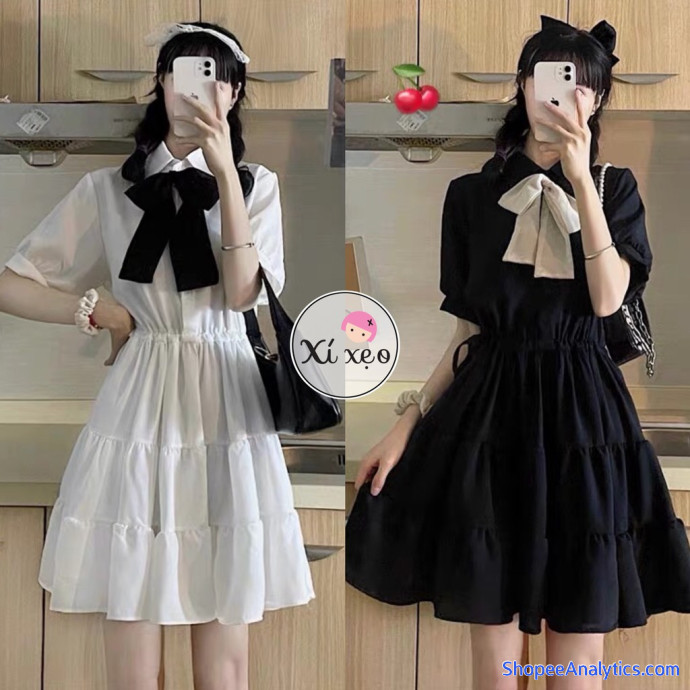 Thông tin sản phẩm Váy đầm babydoll cổ nơ đen trắng, đầm dáng xoè tay phồng siêu xinh xixeoshop - V18