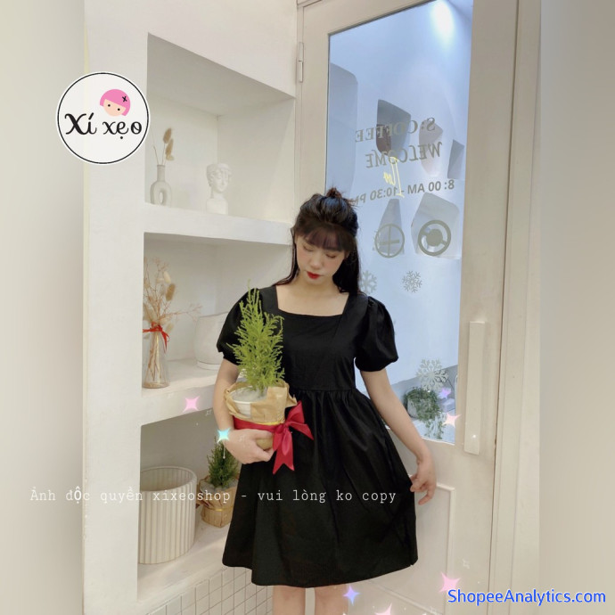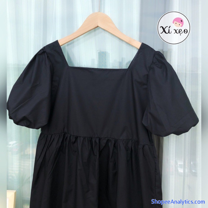 Thông tin sản phẩm váy đầm babydoll tay phồng, váy ulzzang dáng xoè màu đen xixeoshop - V4 đen