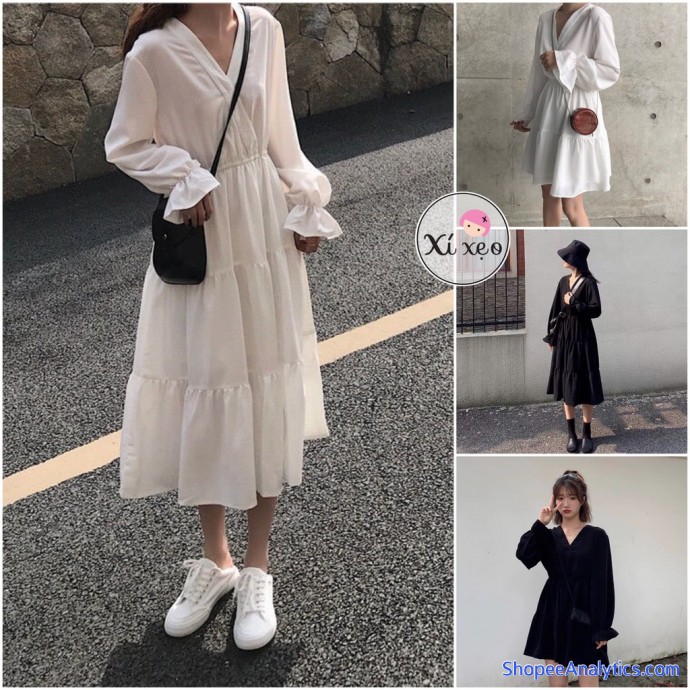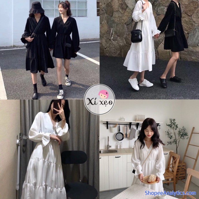 Thông tin sản phẩm Váy babydoll dáng dài, đầm babydoll trắng đen đôi bạn thân xixeoshop