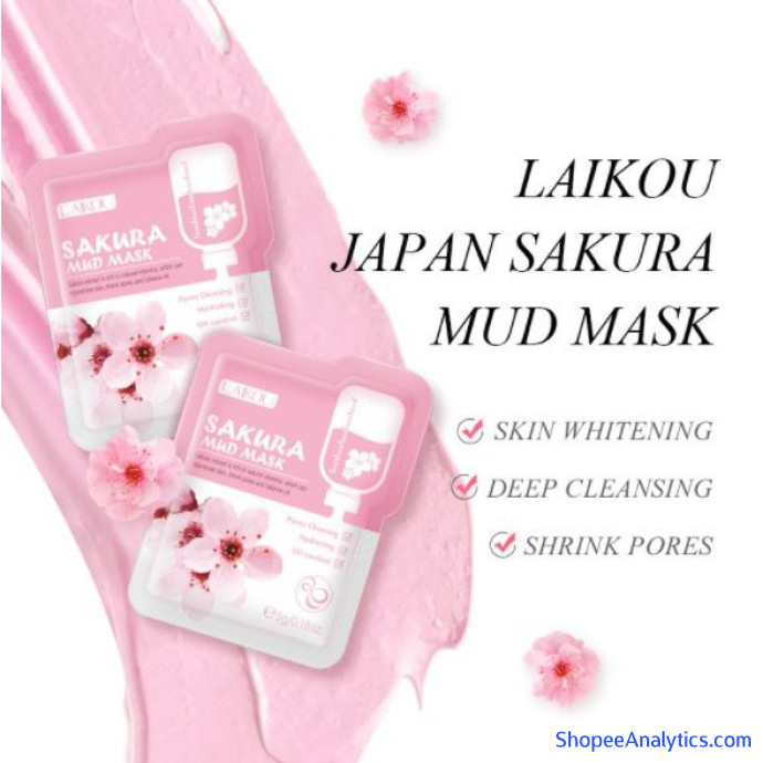 Lẻ 1 Gói Mặt nạ LAIKOU bùn Hoa anh đào cấp nước sạch da kiềm dầu Japan Sakura Mud Mask