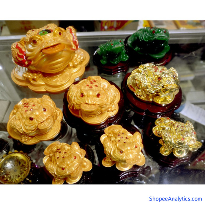 Shop có 5 mẫu Thiềm Thừ:sơn xi vàng,sơn nhũ vàng và xanh ngọc,màu đỏ,trắng dạ quang -mỗi màu đều có 2 cỡ