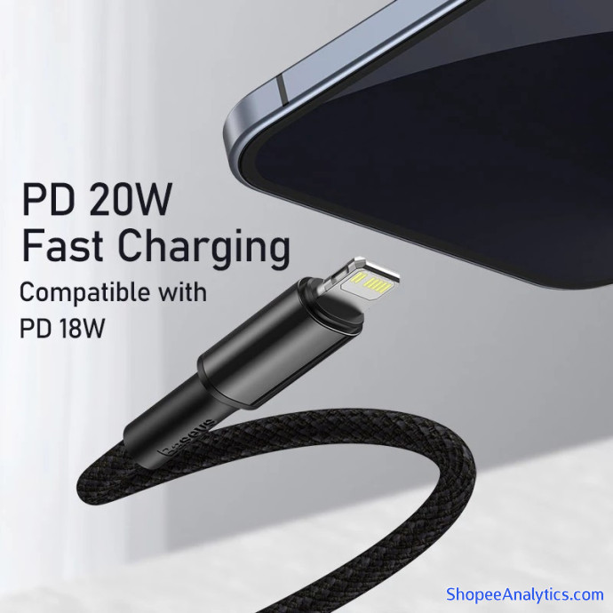 +Dây C to iPhone 1m : cáp bọc dù baseus Type C to lightning - hỗ trợ sạc nhanh PD 18W - màu đen dài 1 mét
