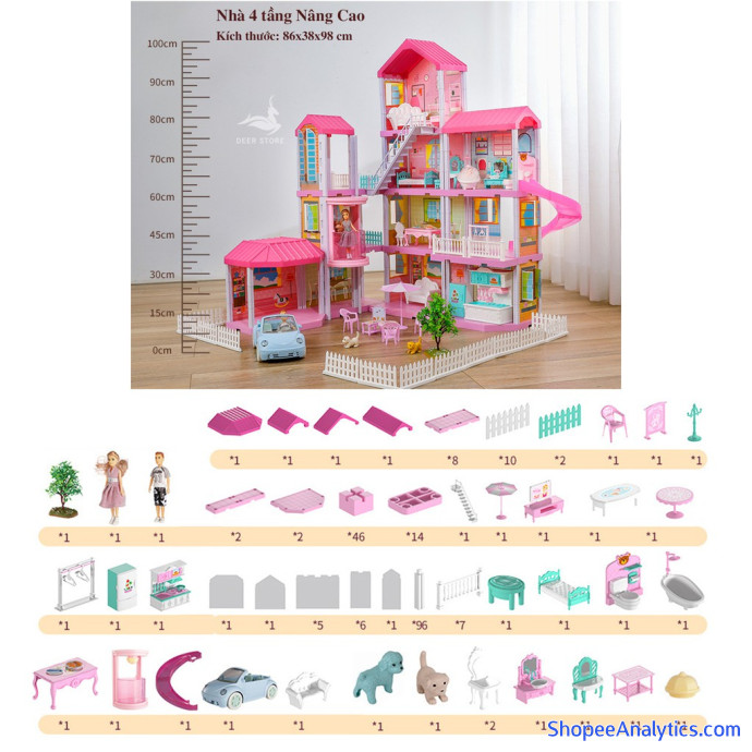 Tổng thể Nhà búp bê Barbie cỡ lớn 4 tầng tùy chỉnh. Quà tặng sinh nhật cho bé gái | Tặng hai búp bê, Nhà biệt thự đủ nội thất được đánh giá trung bình 5.00/5 điểm dựa vào 5 đánh giá qua 11 lượt mua hàng (Cập nhập ngày 29/08/2021).