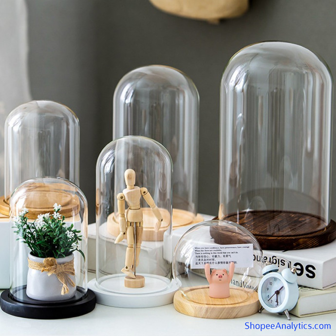 - Chất liệu: chụp thủy tinh dày trong suốt; đế gỗ thông chắc chắn