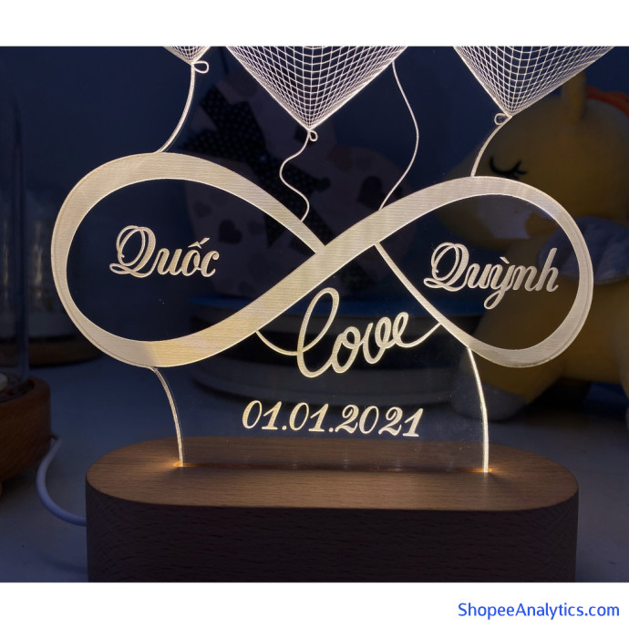 Tổng thể Đèn Ngủ Led 3D, Quà tặng đám cưới | KHẮC CHỮ THEO YÊU CẦU - ĐẾ GỖ được đánh giá trung bình 4.97/5 điểm dựa vào 148 đánh giá qua 300 lượt mua hàng (Cập nhập ngày 20/08/2021).