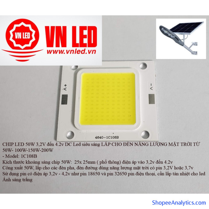Kích thước khoảng sáng chip 50W: 25x 25mm ( phổ thông) điện áp vào 3,2v đến 4.2v