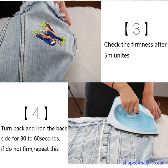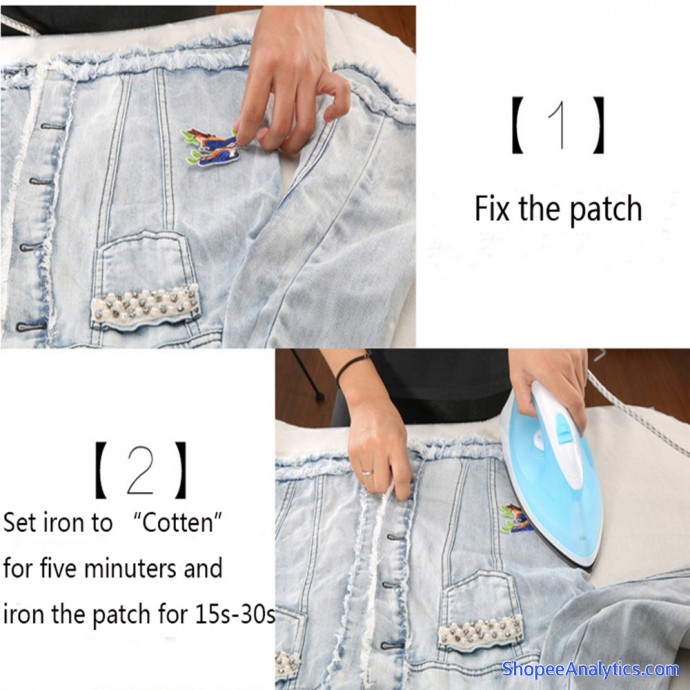 1: Đặt miếng vá vào vị trí bạn muốn và làm nóng bàn ủi (120-150°C). Bạn có thể đặt vải cotton lên miếng dán để cố định vải trước khi ủi.Ủi miếng dán trong 15-30 giây.