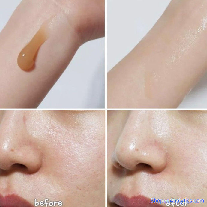 Kết cấu gel lỏng có màu nâu tự nhiên, mỏng nhẹ, thẩm thấu nhanh chóng, không gây cảm giác nhờn dính khó chịu sau khi sử dụng.