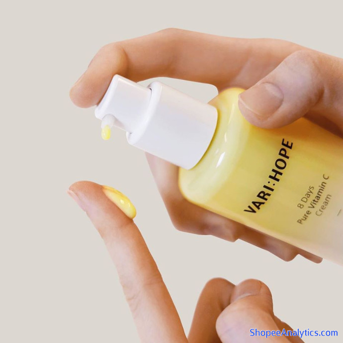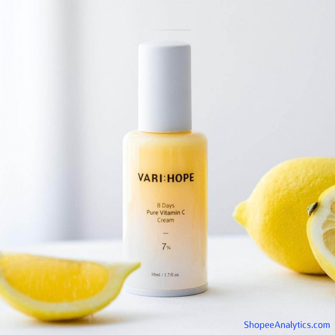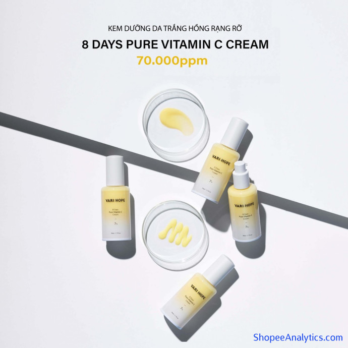 Kem dưỡng trắng da với 7% Vitamin C nguyên chất, sản phẩm không chứa chất bảo quản. Đây là kết quả nghiên cứu trong suốt 40 năm để sáng tạo ra một sản phẩm dưỡng trắng da an toàn và hiệu quả. Để giữ được sự ổn định và ngăn chặn sự oxy hoá, Varihope 8 Days Pure Vitamin C Cream dựa trên quá trình nghiên cứu trong suốt thời gian dài đã có thể giữ nguyên độ ổn định của Vitamin C mà không cần dùng chất bảo quản. Nhờ đó giúp nuôi dưỡng làn da căng mịn, trắng hồng một cách an toàn, khỏe mạnh.