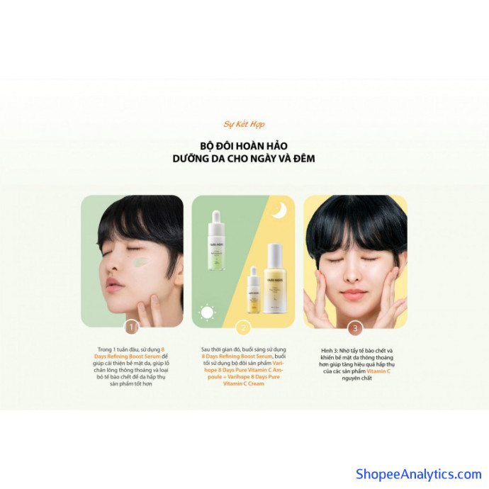 Kem dưỡng trắng da Varihope Vitamin C Cream 7% sẽ phát huy tối đa hiệu quả hơn khi sử dụng cùng serum Vitamin C dưỡng trắng da 13.5% của Varihope và tinh chất làm sạch da Refining Boost Serum (AHA BHA PHA Serum).