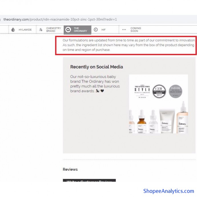 - The Ordinary thay đổi packaging thường xuyên, vài lần/ năm.
