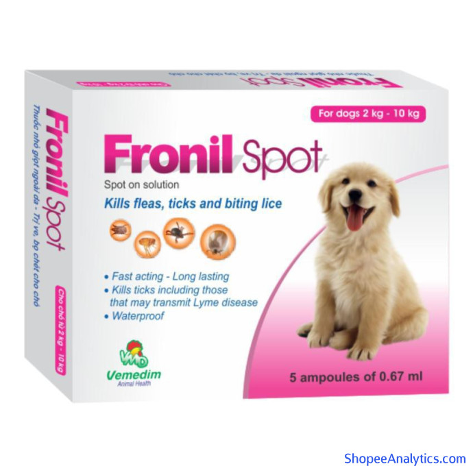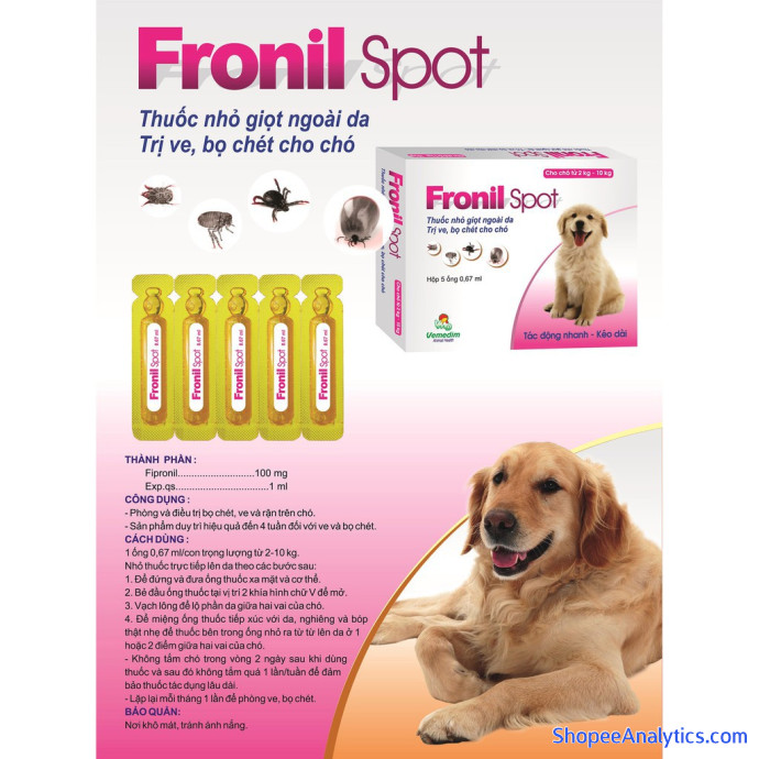 Fronil Spot là thuốc nhỏ ngoài da phòng và trị các loại ve, rận, bọ chét ở chó tốc độ nhanh, cực kỳ tiện dụng và hiệu quả. Tác động nhanh đến các loại ve, bọ chét và 1 số loại ký sinh trùng khác.
