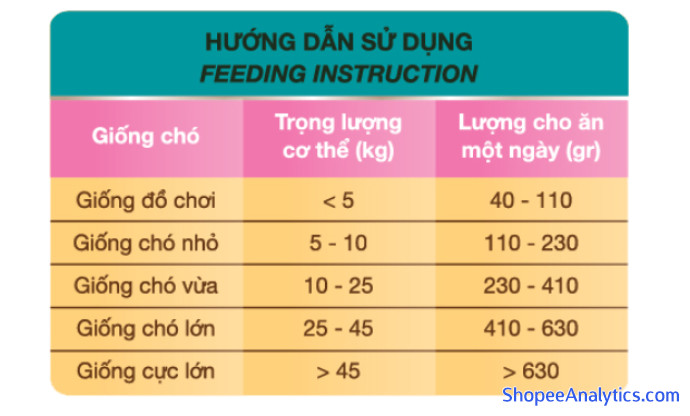Bảng hướng dẫn cho ăn nêu trên chỉ dùng để tham khảo, lượng thức ăn nên được điều chỉnh tùy theo mức độ ăn và cân nặng của thú cưng. Nên thay đổi giữa các loại thức ăn có hương vị khác nhau của Dr.KYAN để Cún cưng của bạn luôn cảm thấy ngon và lạ miệng.