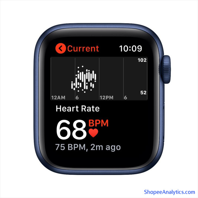 Apple Watch Series 6 có thể cảnh báo bạn nếu nhịp tim nhanh hay chậm bất thường, cũng như đo lường nhịp tim hiện tại. Xem các chỉ số tập luyện của bạn trên màn hình Retina Luôn Bật đã được cải tiến sáng hơn 2,5 lần lúc ở ngoài trời khi bạn hạ cổ tay xuống. Thiết lập thói quen đi ngủ và theo dõi giấc ngủ. Trả lời cuộc gọi và tin nhắn ngay từ cổ tay của bạn. Đây là thiết bị tối ưu cho cuộc sống khỏe mạnh hơn, năng động hơn, kết nối nhiều hơn