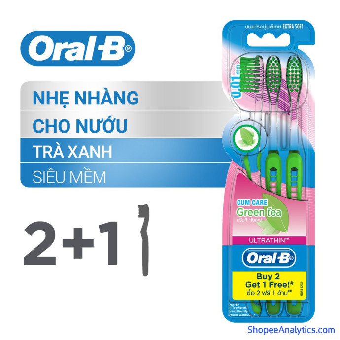 Tổng thể Bàn chải Oral-B tinh chất Trà Xanh/ Trà Đen vỉ 3 cây (Mua 2 tặng 1) được đánh giá trung bình 4.95/5 điểm dựa vào 1,410 đánh giá qua 3,491 lượt mua hàng (Cập nhập ngày 08/10/2021).