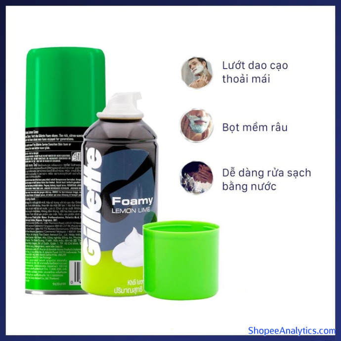 Bọt cạo râu Gillette Foamy Lemon Lime giúp mang đến cho phái mạnh cảm giác thoải mái và an toàn tuyệt đối khi cạo râu. Sản phẩm có tác dụng làm mềm chân râu và làm mềm da, giúp cho việc cạo râu trở nên dễ dàng và nhanh chóng hơn. Bọt cạo râu còn có tác dụng xoa dịu vùng da tổn thương, giúp se lỗ chân lông và ngăn ngừa viêm nhiễm cho da.
