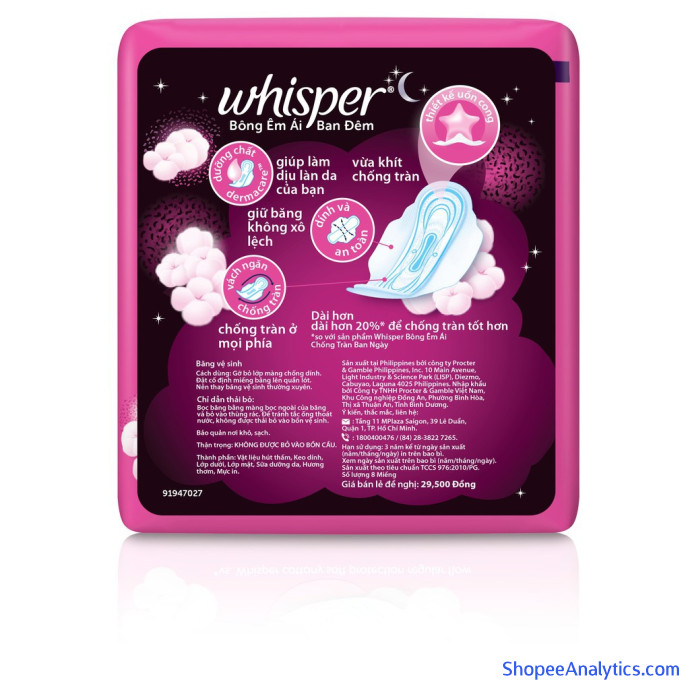 Vì đây là sản phẩm thương hiệu Whisper được bán từ gian hàng chính hãng nên giá sẽ cao hơn so với giá các sản phẩm khác.