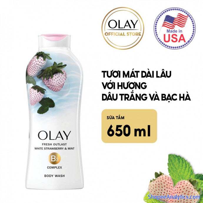 "Sữa tắm dưỡng da Olay 650ml mới, nhập khẩu từ Mỹ cấp nước và cải thiện làn da sau 14 ngày sử dụng.