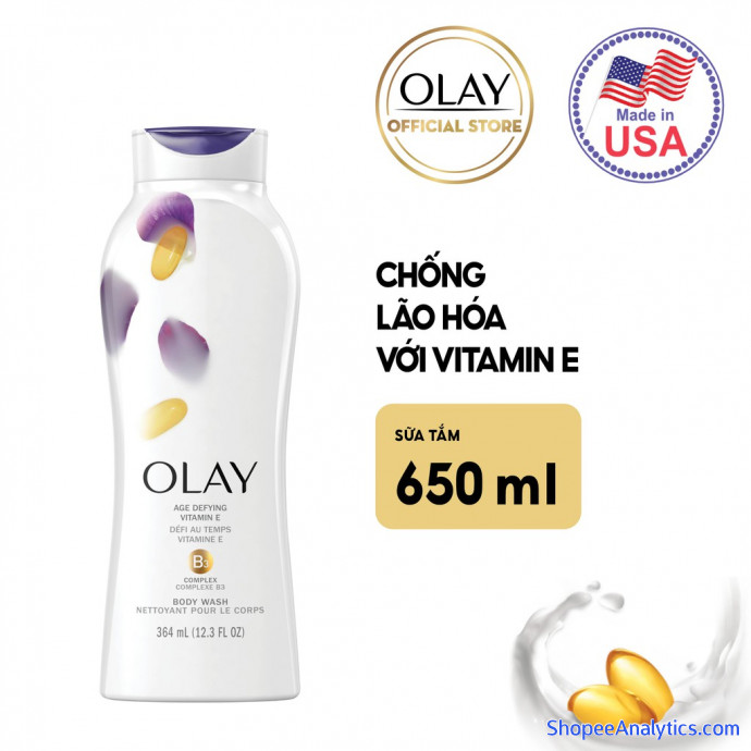 - Sữa tắm Olay Vitamin E - Công thức chống lão hóa tiên tiến, bảo vệ da tránh khỏi các tác nhân gây hại từ môi trường và rạng rỡ, trẻ trung ngay từ bên trong, đồng thời dưỡng ẩm da luôn căng mọng