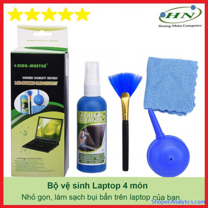 Bộ vệ sinh laptop King Master 4 món bao gồm 1 chổi quét, 1 thổi bụi, 1 chai dung dịch làm sạch và 1 miếng vải lau siêu thấm sẽ giúp nhanh chóng mang lại vẻ ngoài như mới cho chiếc laptop của bạn.