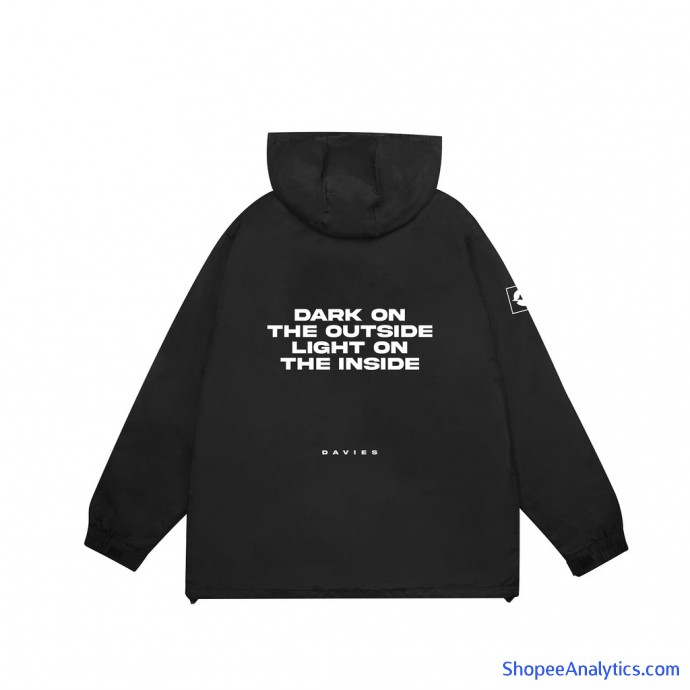 *** Mô tả chi tiết áo khoác dù nam có mũ form rộng màu đen - Black Daviesism Jacket.