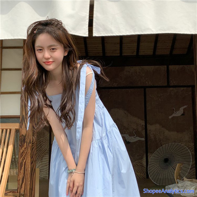 ✌️ Váy 2 dây buộc nơ xanh và trắng dự sẽ là mẫu váy hot hit của năm nha..